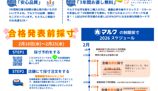 ご予約やお問い合わせ、お得な情報はじめ制服に関することなど♩LINEにて配信中♩